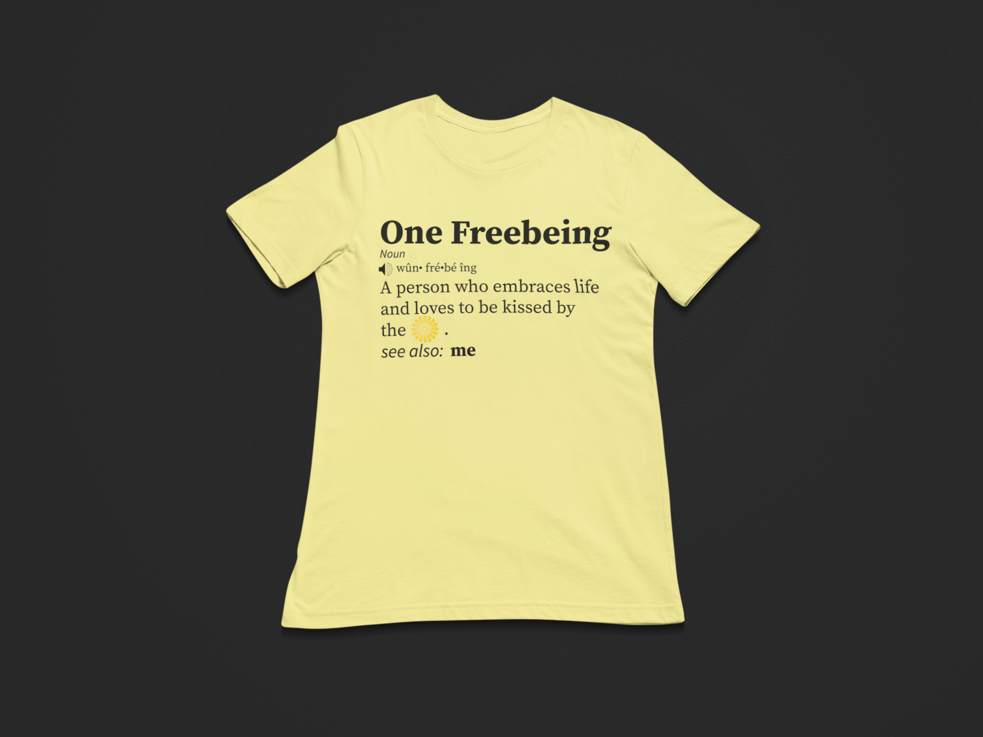 Time for class. Our One Freebeing Signature 101 Women's t-shirt breaks it down. A "One Freebeing is a person who embraces life and loves to be kissed by the sun. See also: me".